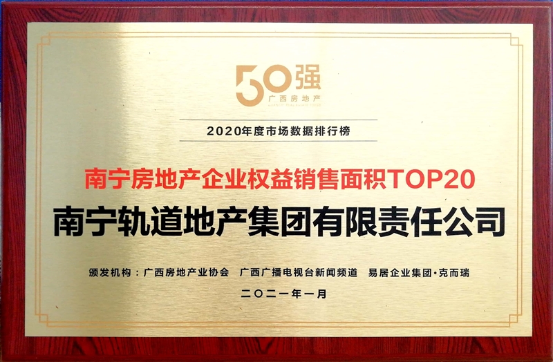• 公司榮獲2020年度南寧房地產(chǎn)企業(yè)權(quán)益銷售面積TOP20稱號