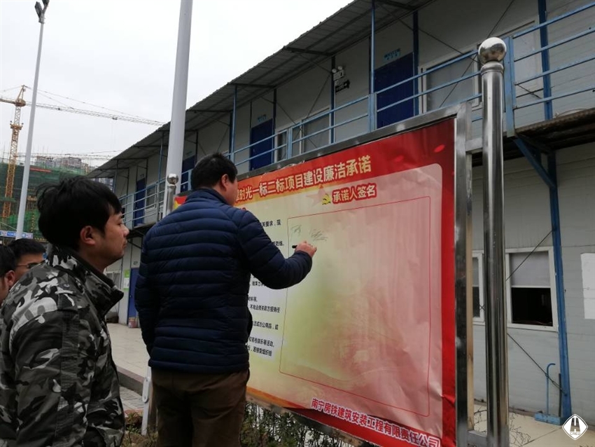 為進(jìn)一步加強(qiáng)項(xiàng)目管理人員廉潔意識,提高責(zé)任意識、服務(wù)意識,維護(hù)項(xiàng)目管理人員的良好形象,1月23日,房鐵建安公司項(xiàng)目部組織項(xiàng)目中層及以上管理人員開展廉潔承諾簽名活動(dòng)。