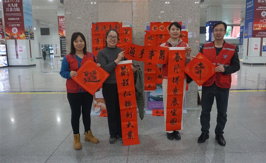 1月23日上午,軌道地產建筑公司黨支部與南湖街道屯里社區(qū)黨總支攜手南寧火車東站南廣場開展一場別開生面的送春聯、贈福字活動。社區(qū)黨員與企業(yè)黨員志愿者積極參與,為奔波在春運途中的人們送去滿滿溫暖與新春祝福。