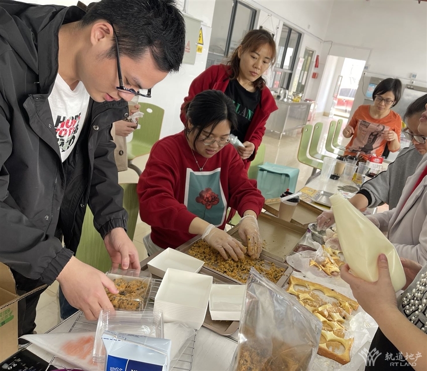活動現(xiàn)場,由愛好烘焙的同事指導(dǎo)大家制作蛋糕、蛋撻、肉松小貝、雪媚娘、珍珠奶茶等美食,有“斤斤計(jì)較”分配食材的、有“認(rèn)認(rèn)真真”研究烤制時間的、有“切切察察”切分水果的……一番忙碌之后,一個個美觀、美味的蛋糕、蛋撻等陸續(xù)呈現(xiàn)在大家的面前。整個活動現(xiàn)場彌漫著濃郁的香甜氣味,大家品嘗著自己的勞動成果,洋溢著陣陣的歡聲笑語,充滿著快樂和幸福的味道。