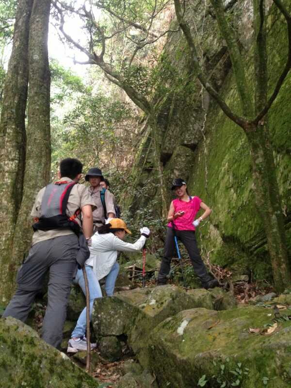 周末,好友相約,登頂大明山早。上十點(diǎn)從南寧出發(fā),經(jīng)過一個(gè)小時(shí)車程到達(dá)大明山腳。當(dāng)我們站在山腳仰望山頂時(shí),心中對挑戰(zhàn)極限充滿了渴望。不管多么遠(yuǎn)、多么高、多么陡、多么險(xiǎn),開始攀登,才發(fā)覺,每前進(jìn)一步,眼前的風(fēng)景決然不同,直有直的筆挺,曲有曲的險(xiǎn)峻,險(xiǎn)有險(xiǎn)的俊秀,高有高的視野!就這樣,我們懷著好奇,帶著已知和未知的肯定與否定,開始一路攀爬。上山的路愈發(fā)陡峭、危險(xiǎn),漸漸地,大伙的體力開始不支,大腿灌了鉛似的變得越來越沉。同行的小伙伴感嘆這是登山還是攀巖,大家手腳并用,每前進(jìn)一步,都感覺無比艱辛。其中一個(gè)小伙伴開始動(dòng)搖,想放棄,但是團(tuán)隊(duì)登頂?shù)男拍睿屛覀儾辉试S放棄,大家相互鼓勵(lì),相互攙扶,堅(jiān)持登頂。