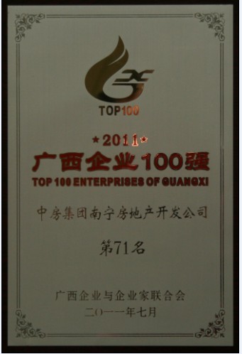 728,廣西企業(yè)與企業(yè)家聯(lián)合會(huì)在桂林發(fā)布了2011年廣西100強(qiáng)企業(yè)名單,中房集團(tuán)南寧房地產(chǎn)開發(fā)公司榮登2011廣西企業(yè)百?gòu)?qiáng)榜,名列第71位。